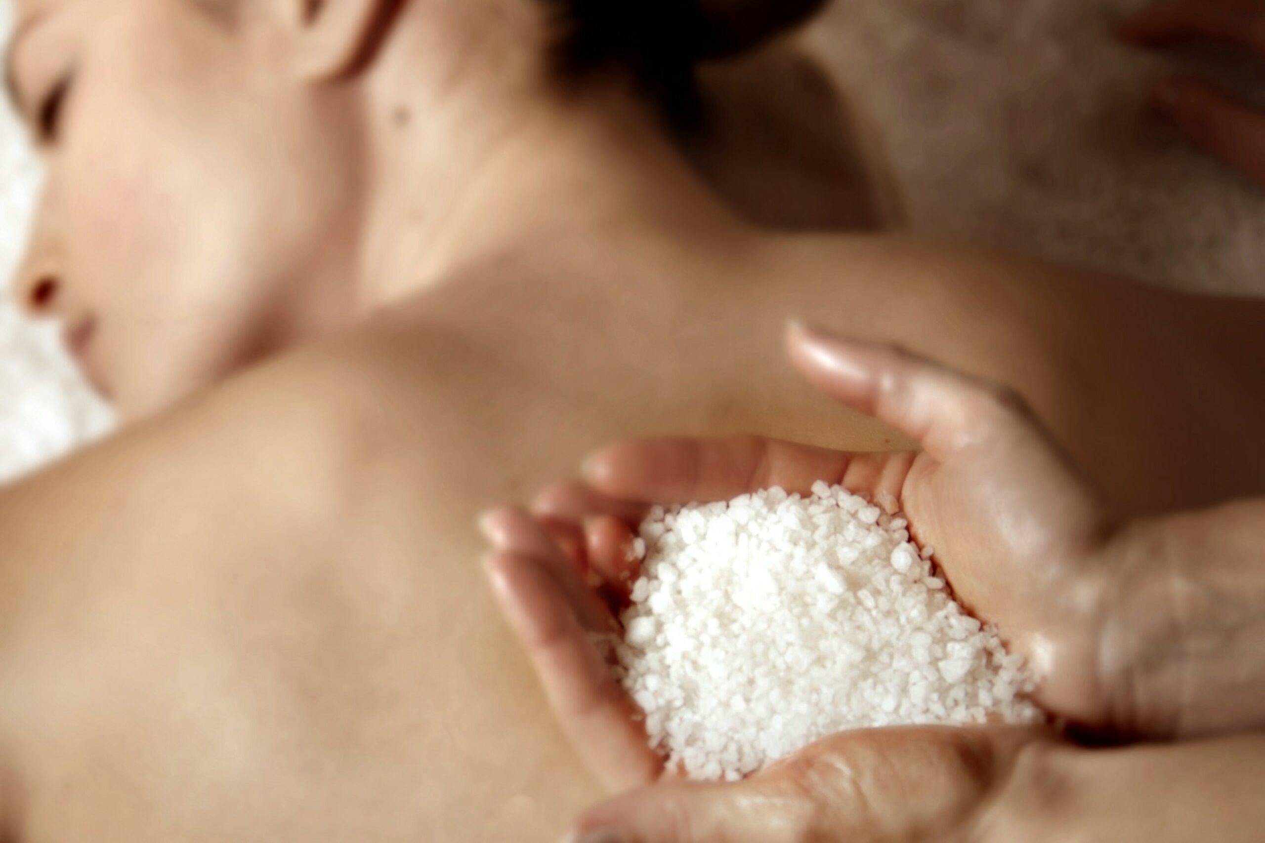 Ein entgiftendes und ausgleichendes Ritual, bei dem eine sanfte Massage mit warmen Himalaja-Salzsteinen und einer Körpermaske mit feinem rosfarbenem Salz kombiniert wird. Die abschließenden Massage mit ätherischen Ölen wirkt beruhigend und regenerierend.