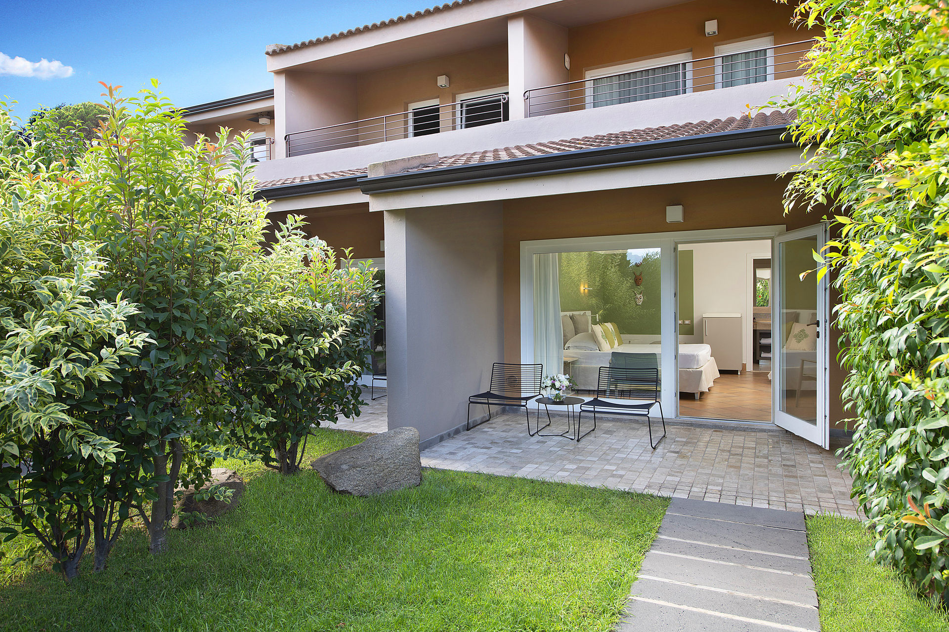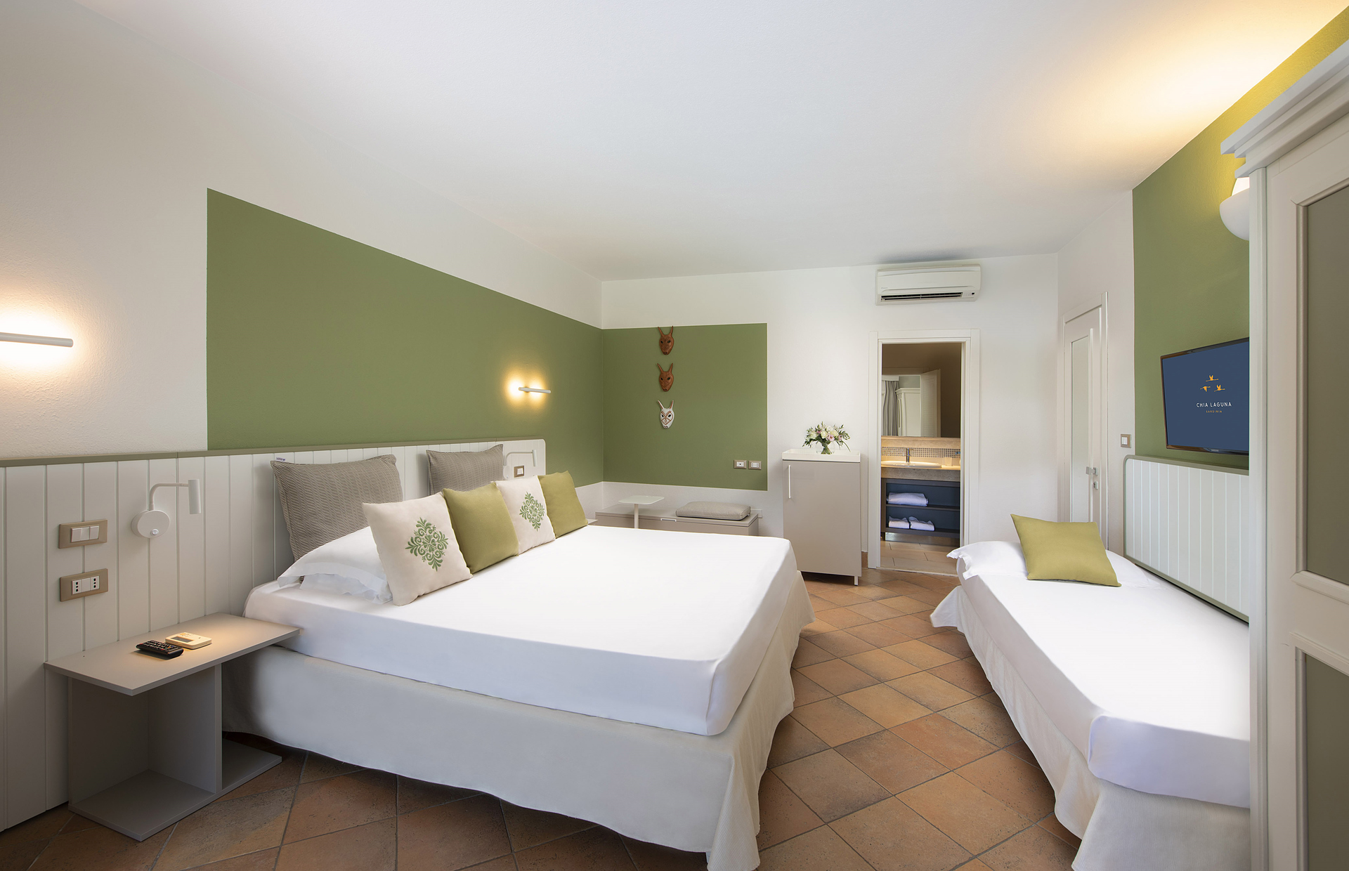 Per chi vuole godersi la natura che circonda Chia queste camere sono la scelta ideale, con l’ampia porta finestra che si affaccia su un giardino privato. Hanno tutte colori naturali e un letto king size. Possibilità di aggiungere una culla o una camera comunicante (su richiesta e a seconda della disponibilità).
